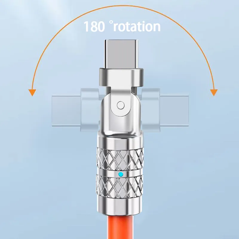 120W 6A USB Type C Cable Super Fast Charging Cable 180 Degree Rotating Elbow Data Cable For Samsung Liquid Silicone Data Lines