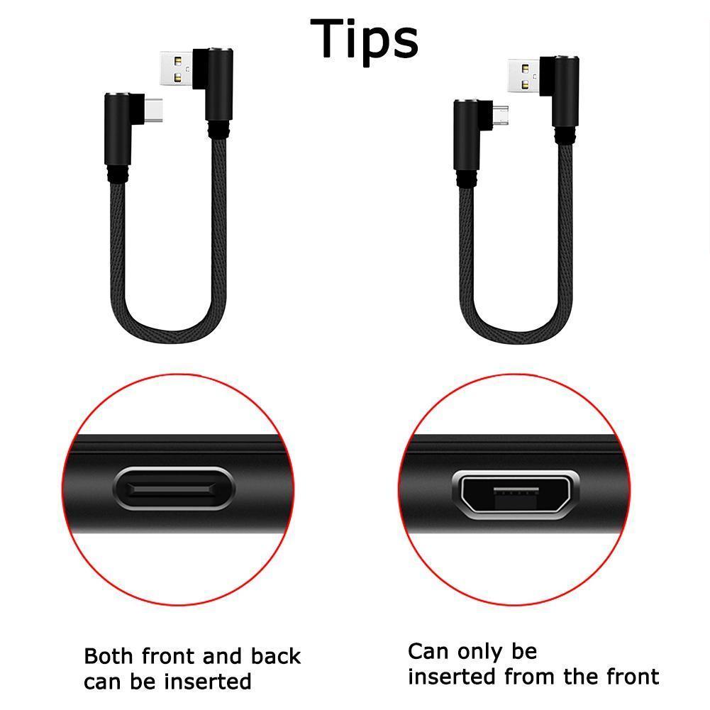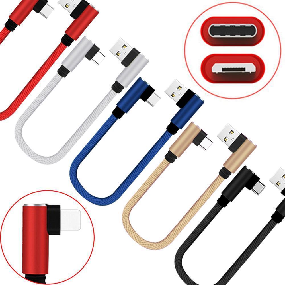 25cm USB to Type C Short Charging Cable Elbow 90 Degree USB C Micro USB Cable 2A Fast Charging