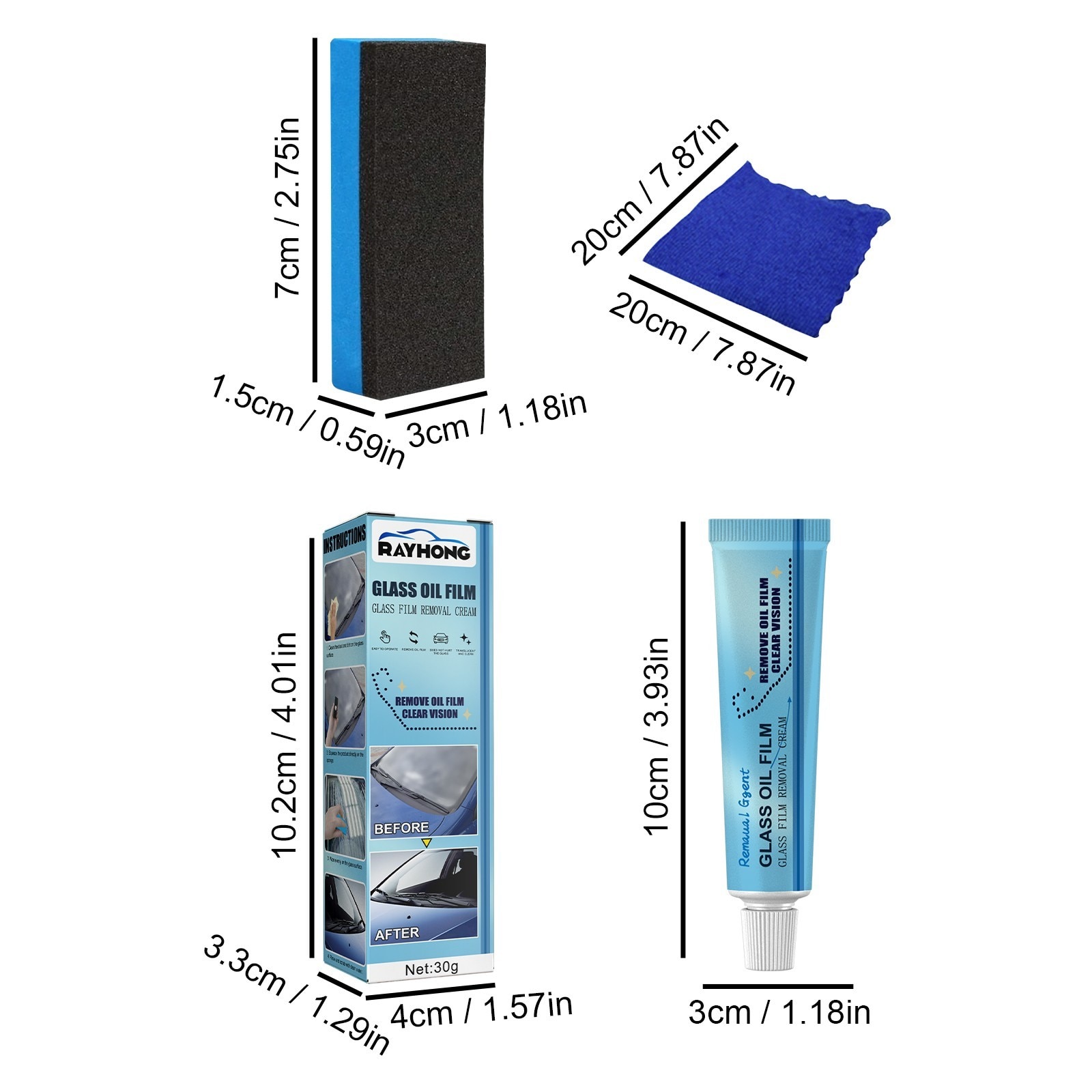 2pc Glass Oil Film Remover Kit For Car Window Mirror Glass Mirror 30ml