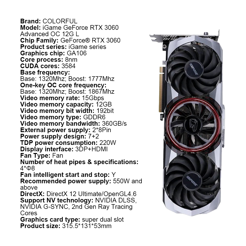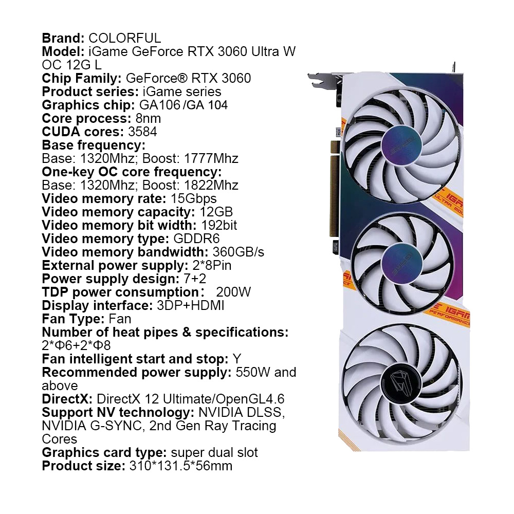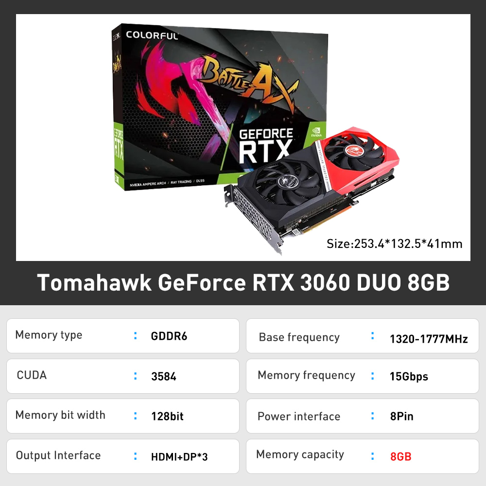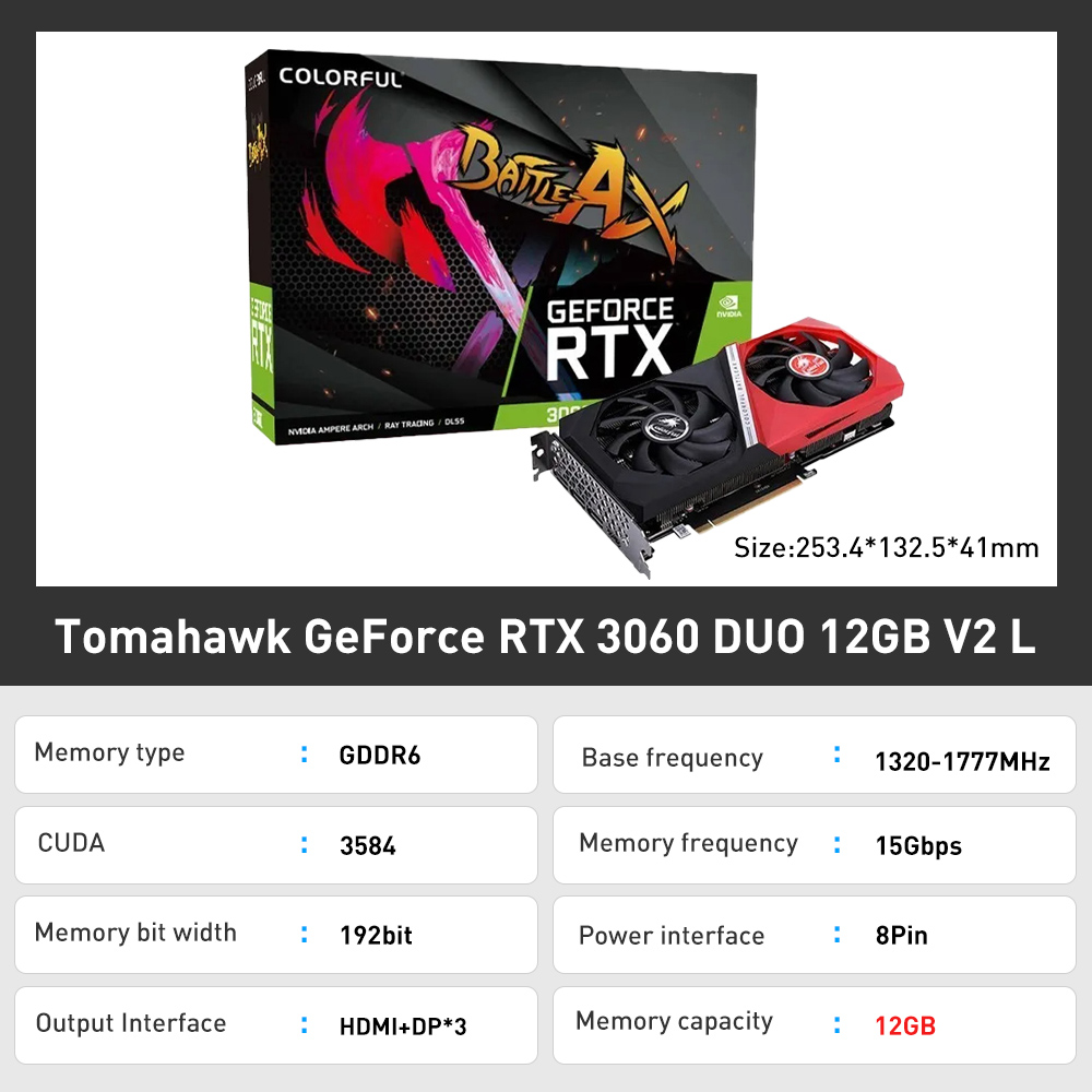 COLORFUL New Graphic Card GDDR6X rtx 3060 3060Ti rtx 3070 rtx 3080 8GB 12GB Gaming GPU Video Cards 256 Bit placa de vídeo LHR