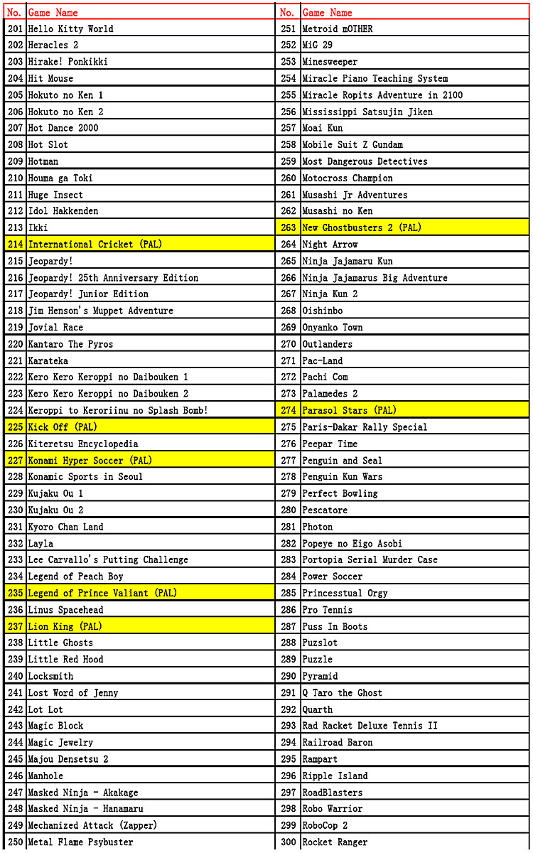 Caution!! Games marked with (EUROPE) are PAL games, PAL games may have issues playing properly on NTSC systems. No marked are NTSC games, NTSC games will run slower on PAL system, some games have problem on PAL console either!