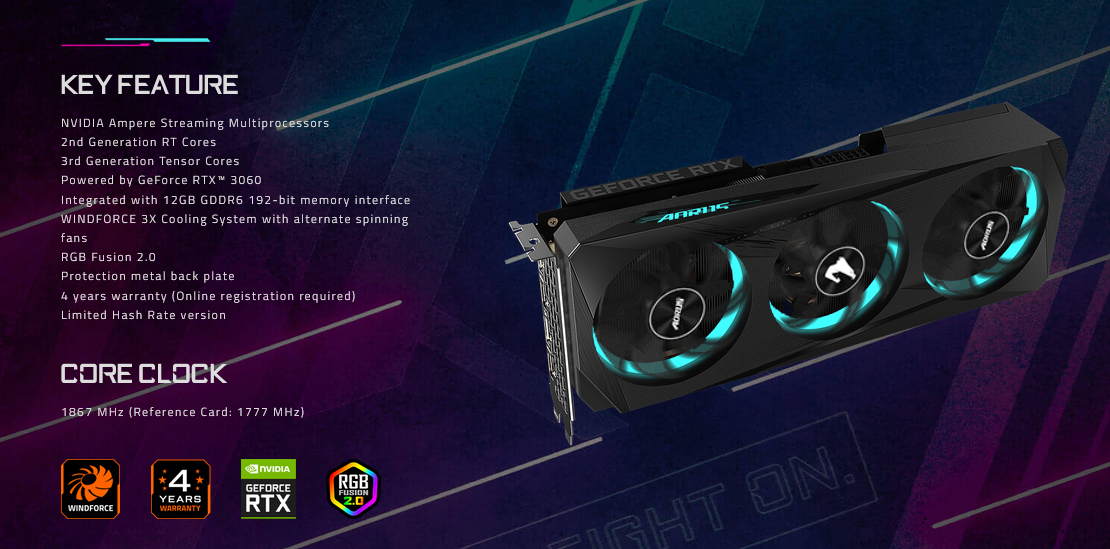 GIGABYTE AORUS GeForce RTX 3060 ELITE 12G VISION GAMING 15000MHz GDDR6 12GB ATX RTX3060 Support AMD Intel Desktop CPU LHR NEW