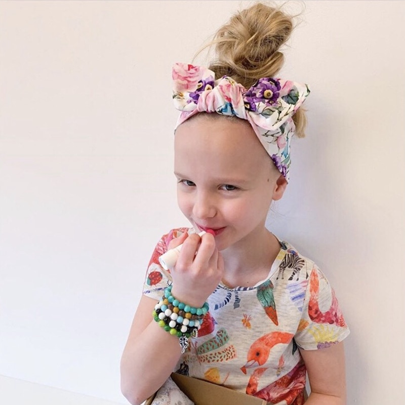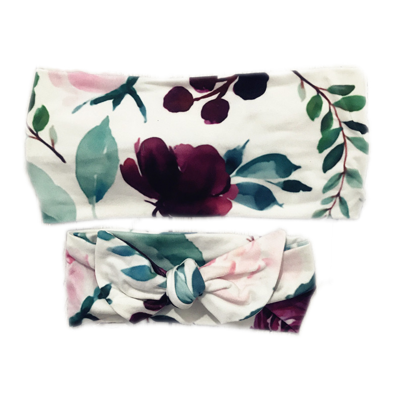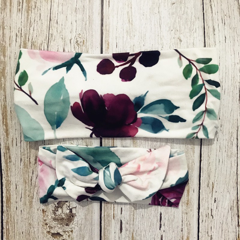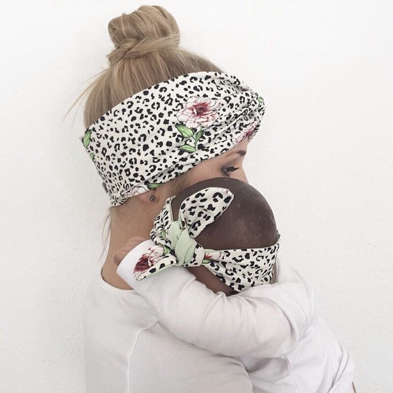 2Pcs/Set Mother Baby Headband Baby Girl Clothes Floral Print Turban Mom Daughter Bowknot Hair Band Matching Elastic Headbands