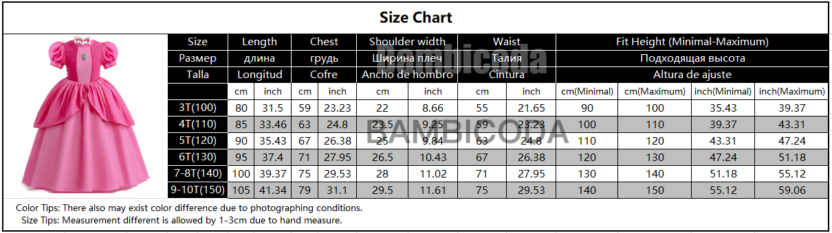 2: There are two units of cm and inch in the size chart. Due to manual measurements, there may be an error of 1-3 cm (0.39″-1.18″).