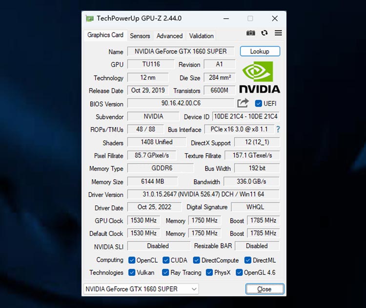 | GPU Model | GeForce GTX 1660 SUPER |