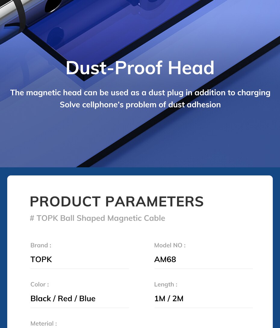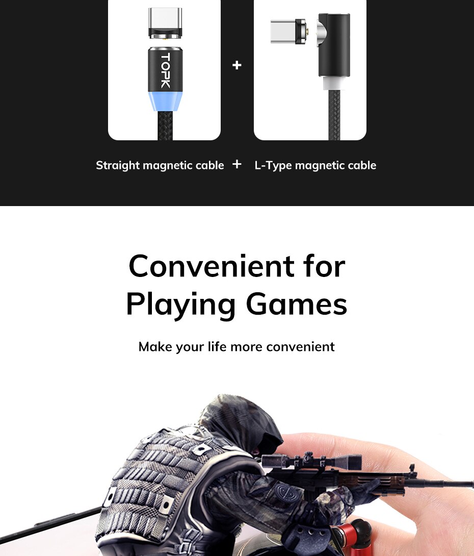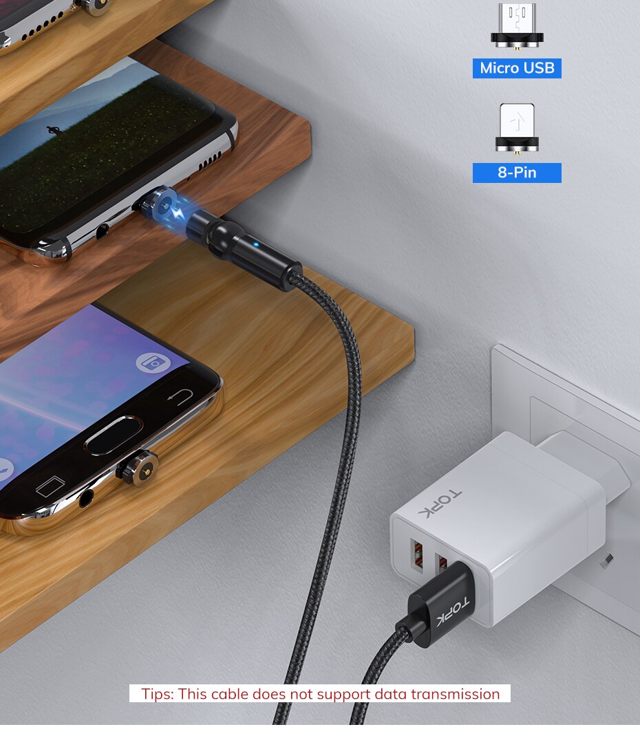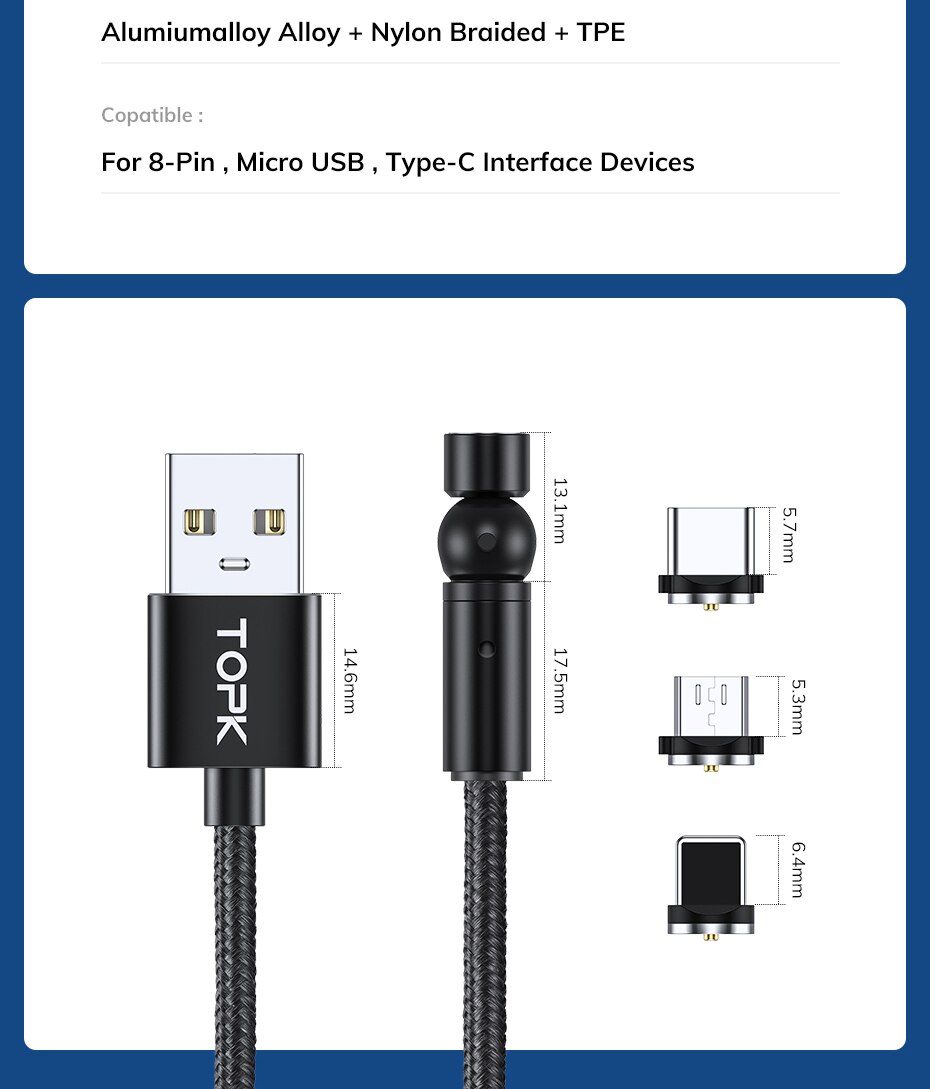 كن أول من يقيم “TOPK 540 Degree Roating Magnetic Cable Micro USB Type C Phone Cable For IPhone11 Pro XS Max Samsung Xiaomi USB Cord Wire Cable” إلغاء الرد