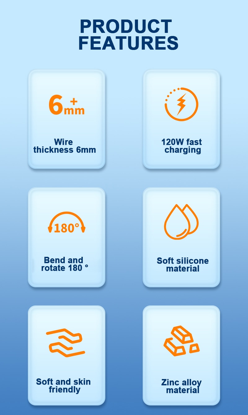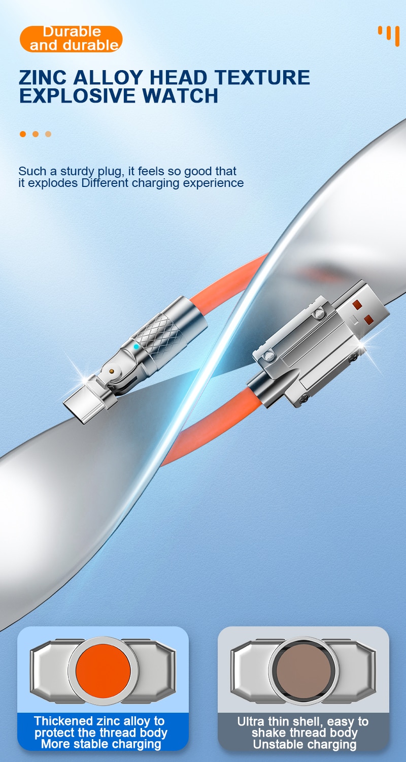 Type C Data Line 120w Fast Charging 6A 180 Rotating Ultra Fast Charging Line For Huawei Samsung Millet Bold Lengthened Silicone